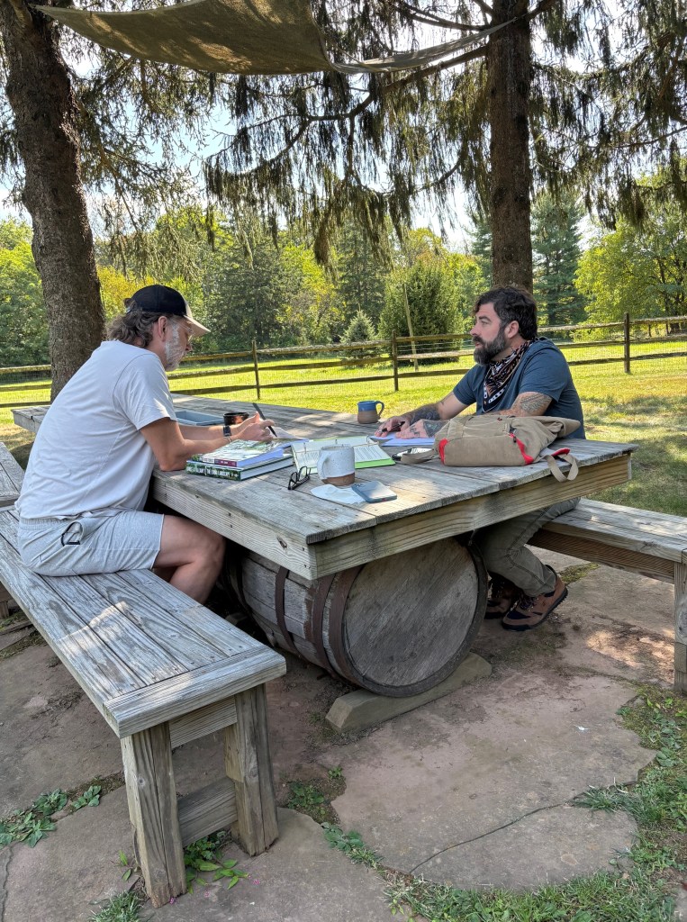 He knows every permaculture author who ever scribbled a manifesto, every podcaster who ever uttered the word “guild,” and can recall the quirks of each plant like they’re all old drinking buddies. For nearly four early morning hours, Lori and I sat with him, soaking it all in as he reviewed the detailed plan for our four acres.