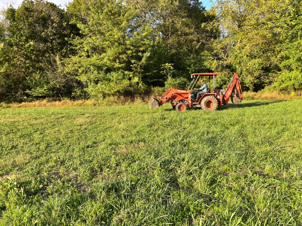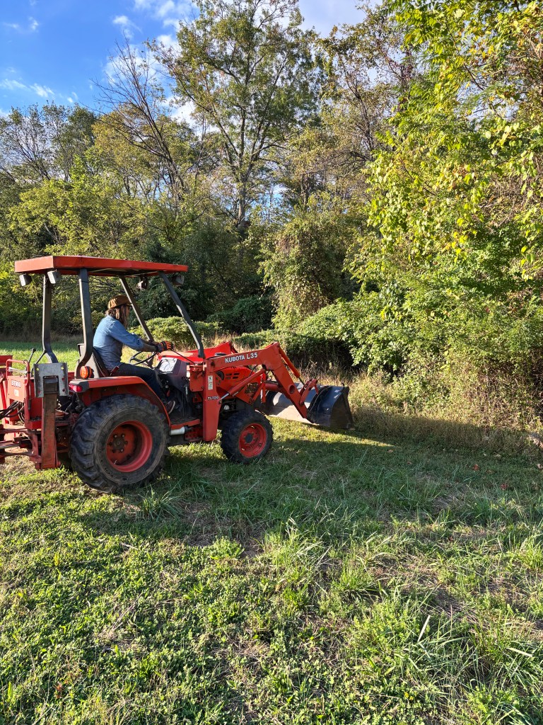 The idea was simple but execution required care. We didn’t want to cut any big trees, and we didn’t want to intrude on Maureen’s space next door. She graciously agreed to let us route the path along her southern boundary, and in exchange we’d help with her groundhog problem. Over a few weeks, Matt and I scouted routes, bushwhacking potential trails, then today we set to work. Chainsaws cleared saplings and deadfall, and before long we had a rough passage wide enough for the tractor. Matt fired up the Kubota, smoothing the path, pushing down a widow-maker tree I’d pre-cut, and carving out a 200-yard lane that now links his yard to our fields.