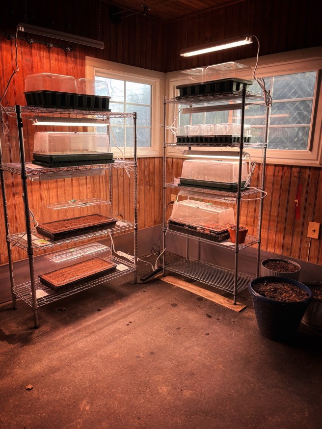 We’ve upgraded to real multi-spectrum grow lights and improved seed starting trays. Most importantly we expanded the diversity of what we put in the dirt. We tried to cover every early season variety that we wanted to grow but there are only so many shelves and lights. We’re hoping these start to sprout right when the weather breaks and we can relocate them to the greenhouse and start the next batch of seeds.