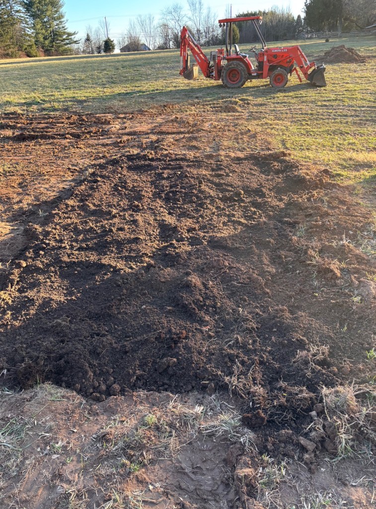 On the first warm day, we only worked a halfday and I went home to use Matt’s Kabota. I reclaimed a small portion of land by pushing back some of the wild mess of junk trees, prickers, briars, redwood and vines that slowly encroach. The ground was very soft so repairing it is a new item to add our TO DO list but it’s a start that probably would have been wiser to do in autumn. For one, new growth would hide the mess that the tractor makes but, more importantly, we wouldn’t be disturbing any spring habitats.